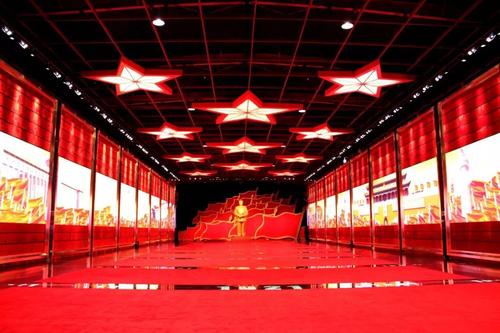 - 纪念馆由一个时空隧道、八个展厅、两个体验馆,一个放映馆、一个革命教育会议室构成。最大的亮点为一条气势恢宏、象征长征精神的时空隧道,以高清LED巨屏纪录了毛主席从1921年至1949年的丰功伟绩,一尊毛主席铜像威严屹立于时空隧道的顶端。时空隧道两侧的展馆里展墙上展出200幅上世纪50至70年代有代表性的毛主席的珍藏老照片,展柜里陈列着种类丰富的各类红色纪念品。